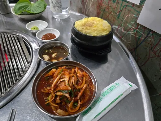 된장찌개는 칼칼한 매콤함이 강한 편이라 얼큰하고 맛있으면서도 매콤함이 강한 된장찌개라서 매운걸 잘 못 먹는 사람에게는 추천할 수는 없는 메뉴인 거 같다.