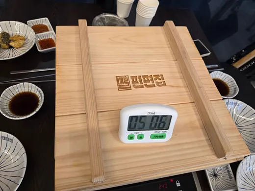 자리 잡고 앉으면 준비되는 편백찜 타이머 시간이 끝나고 직원호출하면 직원분이 열어 주신다.