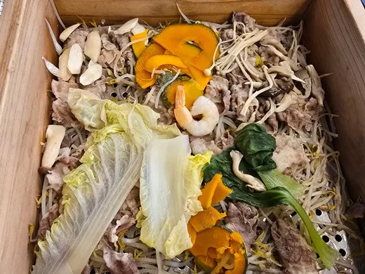 샤브 샤브 육수에 먹는 것과 는 또 다른 맛인 담백한 편백찜. 다 먹고 편백찜 리필 가능