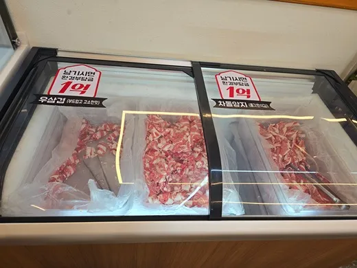 샤브샤브 고기도 무한 리필로 먹을수 있게 우삼겸 차돌양지 가 셀프바에 준비되어 있다.
