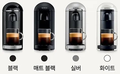 버츄오 플러스 네스프레소 커피머신 색상으로는 블랙, 매트블랙, 실버, 화이트가 있다.