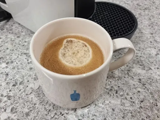 버츄오 플러스 네스프레소 커피머신 이 고유의 바코드를 읽어 커피가 추출되기 때문에 따로 물 추가를 하지 않고 추출된 그대로 풍부한 크레마와 깊은 바디감의 커피 맛을 느낄 수 있었다.