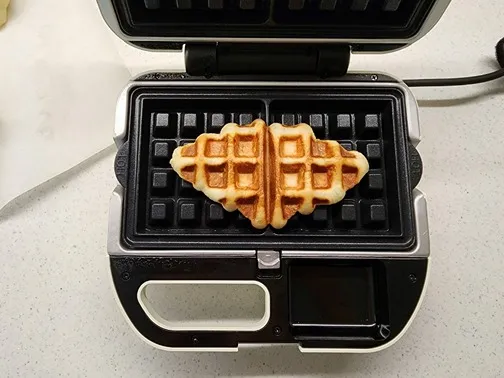 2구 팬 가운데에 생지를 올려서 완성된 크로플